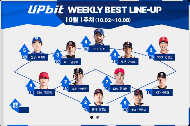 SSG, LG, KIA, KT, 삼성, 한화 →