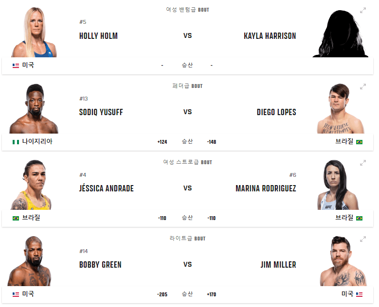 | 여성 스트로급 | 안드라데 vs 로드리게즈 |